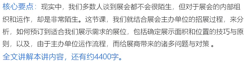 如何预订合适的展位-参展商实战培训核心章节如何预订合适的展位-参展商实战培训核心章节如何预订合适的展位-参展商实战培训核心章节如何预订合适的展位-参展商实战培训核心章节